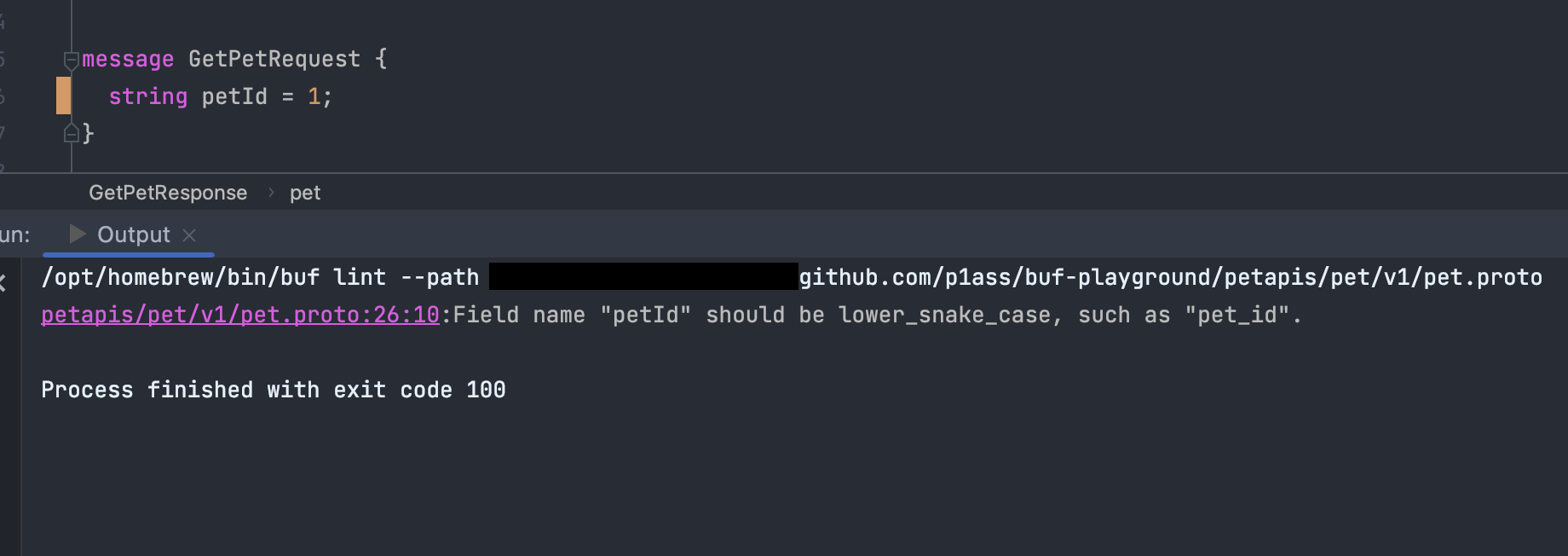 # pet/v1/pet.proto:44:10:Field name "petID" should be lower_snake_case, such as "pet_id".
