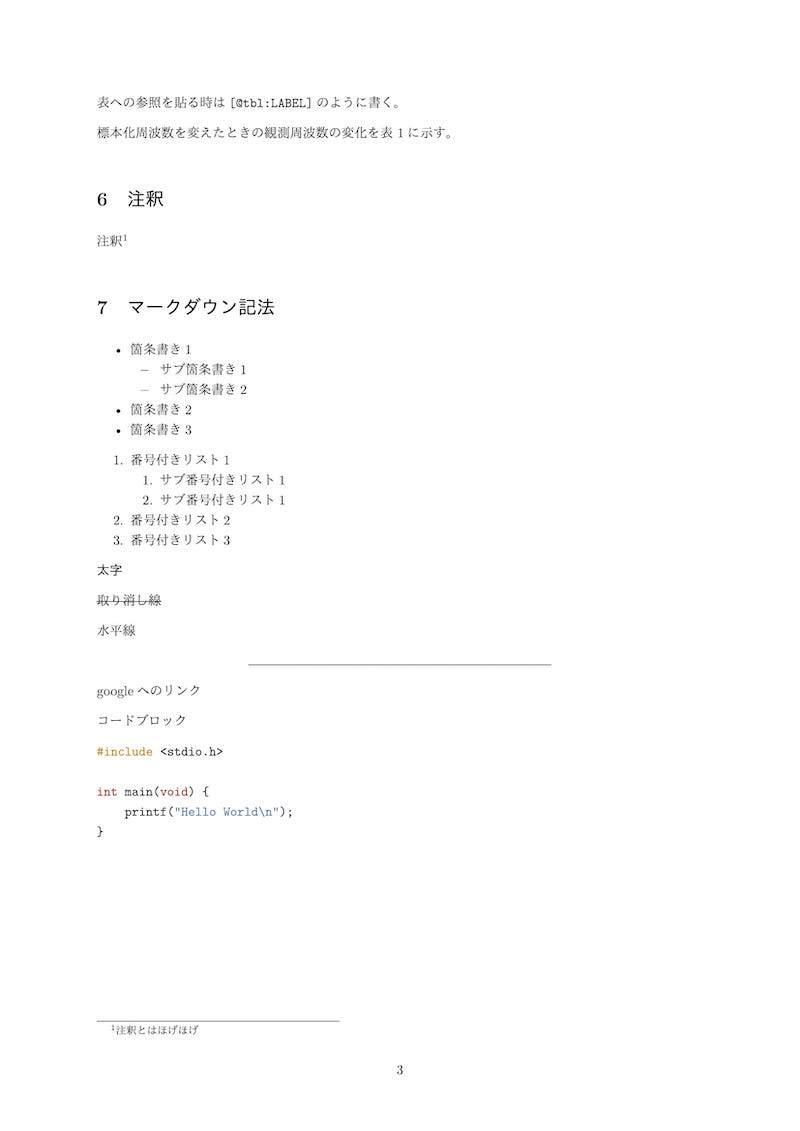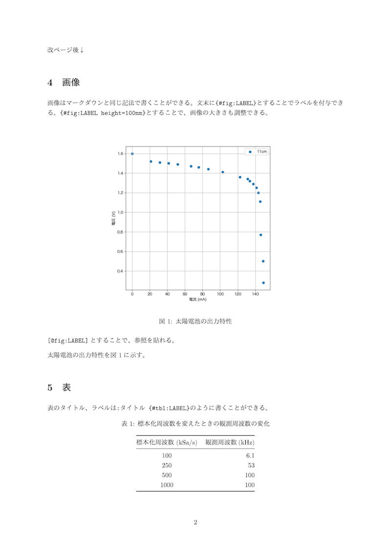 私はそのどちらでもなく、 Markdown 書いています。 Markdown はシンプルなシンタックスで様々な表現ができ、多くのエンジニアに愛されています。 しかし、Markdown は実験レポート用途にあまり使われていないため、そのままでは美しい PDF を作成できません。