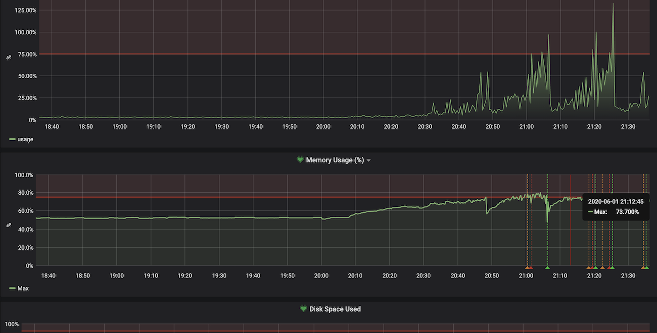 そうこうしているうちに API サーバを立てている VPS のアラートが鳴り始めました。
