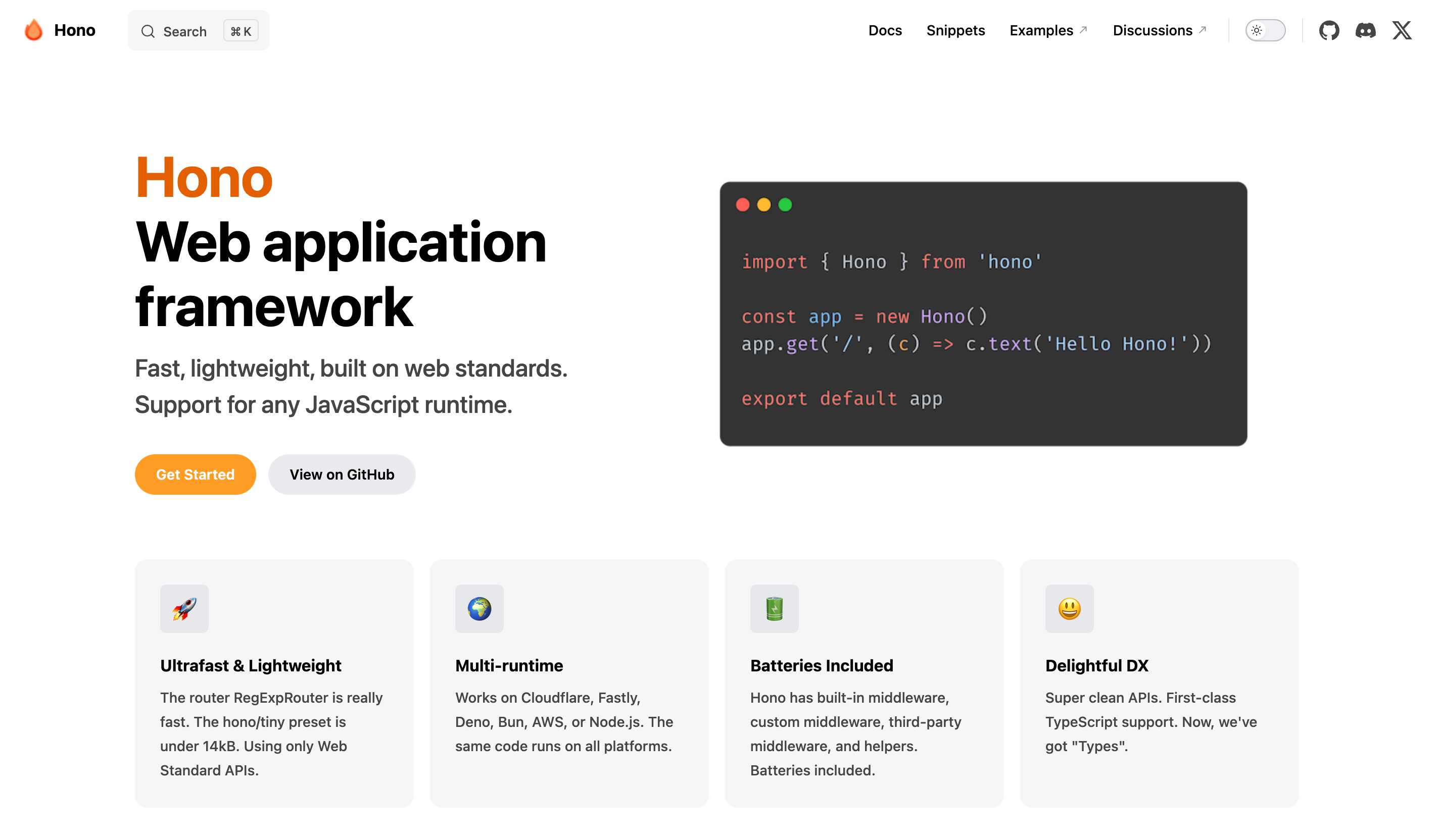 Honoの公式ドキュメント Honoの公式ドキュメントのトップページ